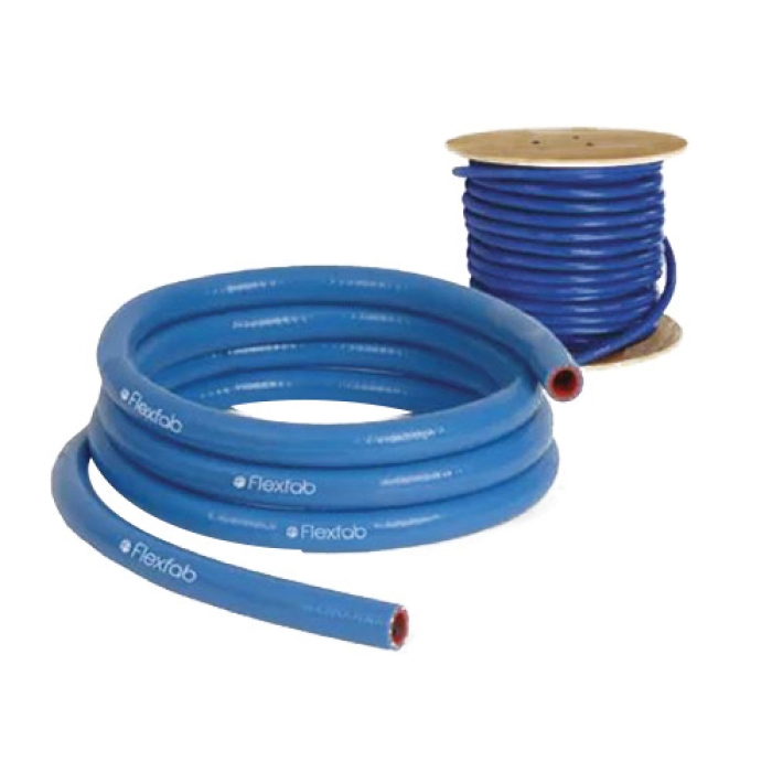Flexfab® Standard Heater Hose, Series: 5526, Nominal Size: 3/4 in, 1.08 in OD, 3/4 in ID, 0.14/0.17 in Thick Wall, 250 ft Length, Silicone, Construction: 1-Ply of Nylon Fiber, Blue, Resistance Properties: Cool/Hot Temperature, Direct Sunlight, Oil, Ozone, -65 deg F Low, 350 deg F High