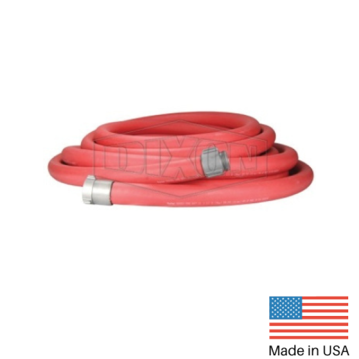 Dixon® Non-Collapsible Fire and Utility Hose, 15B15 Series, Nominal Size: 1-1/2 in, Connection Type: NST/NH, 1.50 in ID, 50 ft Length, 200 psi, Red, Resistance Properties: Abrasion