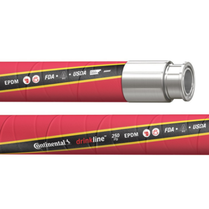 Drinkline® Sanitary Liquid Transfer Hose Assembly, Tri-Clamp x Tri-Clamp Sanitary Fittings, 2 IN X 40 FT, Inside Diameter: 2 in, Length: 40 ft, Temperature Range: -40°F (-40°C) to +220°F (+104°C), Hose Application: Beverage Suction And Discharge, Function: Liquid Transfer, Tube Material: FDA/USDA Compliant, EPDM Rubber Tube Meeting 3A (18-03) and FDA requirements, Cover Material: EPDM Rubber with a Wrapped Finish, Reinforcement: Spiral-Plied Synthetic Fabric, Pressure Rating: 250 psi, Hose Ends: Stainless Steel Sanitary Clamp Fittings, Method of Attachment : Crimped Stainless Steel Interlocking Ferrule, Fabricated by TIPCO Technologies
