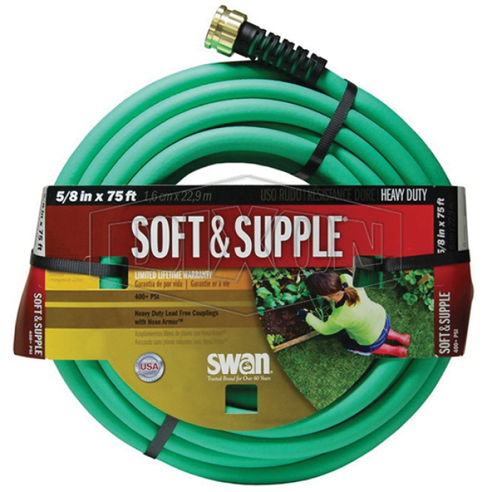 Dixon® Garden Hose, Nominal Size: 5/8 in, 0.62 in ID, 75 ft Length, 400 psi, Rubber/Vinyl, Green, Resistance Properties: Abrasion, Kink, 0 deg F Low, 140 deg F High