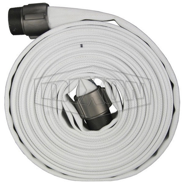 Dixon® Mill Hose, M20 Series, Nominal Size: 2 in, Connection Type: MPT x MPT, 2 in ID, 50 ft Length, 125 psi, PVC/Synthetic, Polyester Cover, Construction: Single-Jacket, All Polyester Outer, White