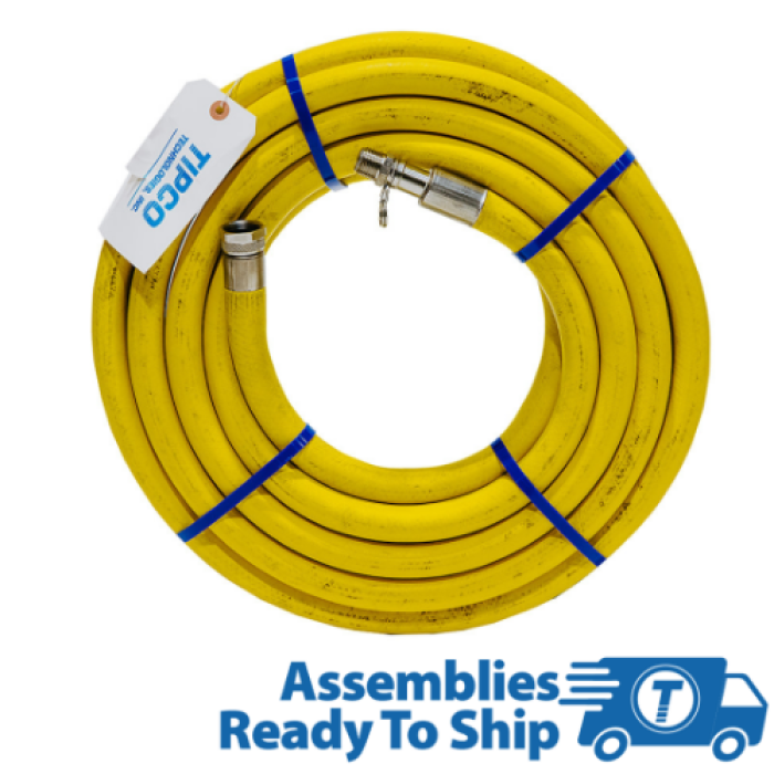 TIPCO Technologies; Fortress® Yellow 3/4 in x 75 ft, FGHT x 1/2 in Male NPT Swivel Stainless Steel, Non-FDA Compliant, Oil Resistant, High Temperature Washdown Hose Assembly