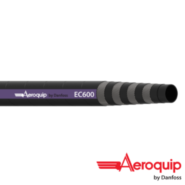 Danfoss's EC600 is a more flexible SAE 100R15 spiral hose to complement the current offering of Danfoss's FC500 X-Flecx™ SAE 100R13 spiral hose offering. FC500 and EC600 were designed to perform in very demanding high impulse applications at 50% of the SAE 100R13 and SAE 100R15 bend radii, respectively. In order to install a spiral hose in a much smaller area, Danfoss designed our X-Flex spiral hoses to be up to 38% more flexible for easier handling during installation. EC600 hose meets and exceeds SAE 100R15 performance at 1/2 the bend radius of a standard SAE 100R15 hose. EC600 has been tested to over 1.3 million impulse cycles with an operating pressure of 6100 psi. EC600 high-pressure spiral hydraulic hose was designed to meet the most demanding applications where very high-pressure and the need for easy installation in tight spaces come together. EC600 X-Flex hydraulic hose exceeds SAE 100R15 performance and ISO 18752.