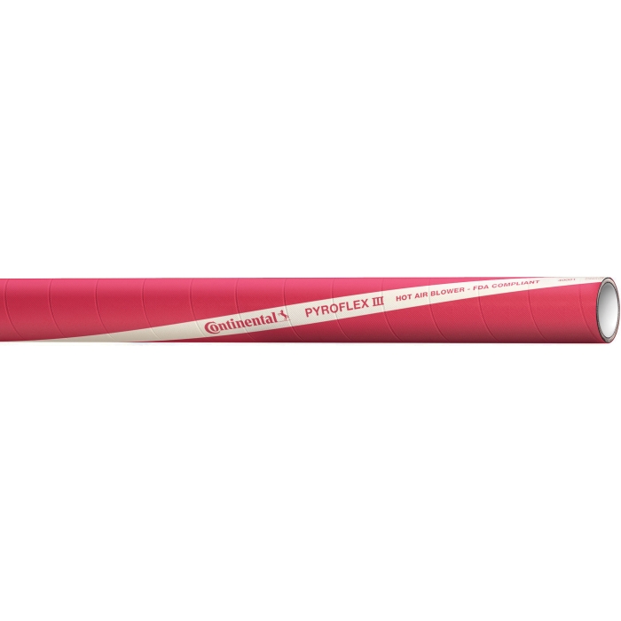 Continental Pyroflex® III Hot Air Hose, Nominal Size: 3 in, 3.56 in OD, 3 in ID, 100 ft Length, 100 psi, EPDM, EPDM Cover, Construction: Spiral-Plied Synthetic Fabric with Wire Helix, Red, 7 in Bend Radius, -20 deg F Low, 325 deg F High
