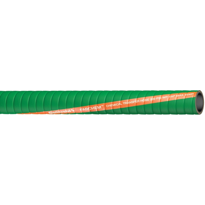 Continental Fabchem® Chemical Transfer Hose, Nominal Size: 4 in, 4.67 in OD, 4 in ID, 100 ft Length, 200 psi, Pliosyn™ Polyethylene, EPDM Cover, Construction: Spiral-Plied Synthetic Fabric with Double Wire Helix, Green, 10 in Bend Radius, -40 deg F Low, 212 deg F High