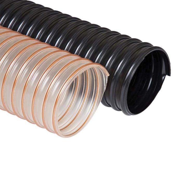 Flexaust® Flx-Thane® HD Ducting Hose, Nominal Size: 10 in, 10 in ID, 0.045 in Thick Wall, 17 psi, Polyurethane, Construction: Heavy Weight Polyurethane Hose Reinforced with a Bronze Coated Spring Steel Wire Helix, Clear, 9 in Bend Radius, Resistance Properties: Abrasion, High Tear, Chemical, -65 deg F Low, 200 deg F High