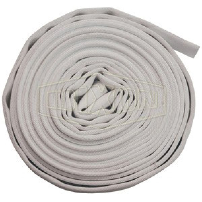 Dixon® Uncoupled 300# Fire Hose, Nominal Size: 2-1/2 in, 2.50 in ID, 50 ft Length, 135 psi, EPDM, Polyester Cover, Construction: Single-Jacket, All Polyester Outer, White, Packaging Quantity: 1 BX