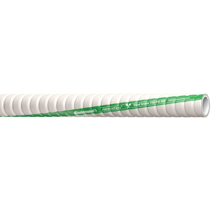 Continental Plicord® ExtremeFlex™ Food and Beverage Hose, Nominal Size: 3 in, 3.56 in OD, 3 in ID, 100 ft Length, 150 psi, Chemivic™ Synthetic Rubber, Chemivic™ Synthetic Rubber Cover, Construction: Spiral-Plied Synthetic Fabric with Galvanized Wire Helix, Gray, 3 in Bend Radius, -25 deg F Low, 212 deg F High