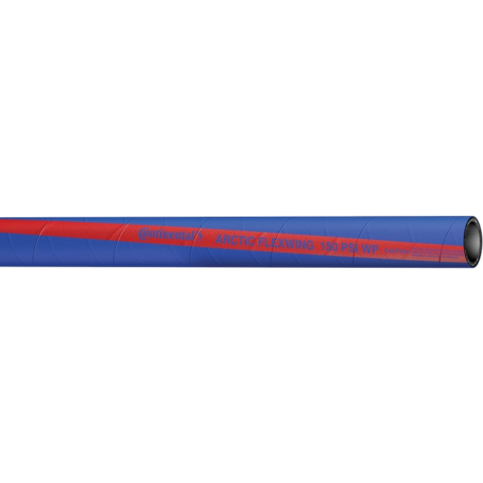 Continental Plicord® Arctic Flexwing® Chemical and Petroleum Transfer Hose, Nominal Size: 4 in, 4.7 in OD, 4 in ID, 100 ft Length, 150 psi, Synthetic Rubber, Synthetic Rubber Cover, Construction: Spiral-Plied Synthetic Fabric with Wire Helix, Blue, 10 in Bend Radius, -65 deg F Low, 180 deg F High, For Use With: Continental ContiTech Insta-Lock™ Cam and Groove Fittings