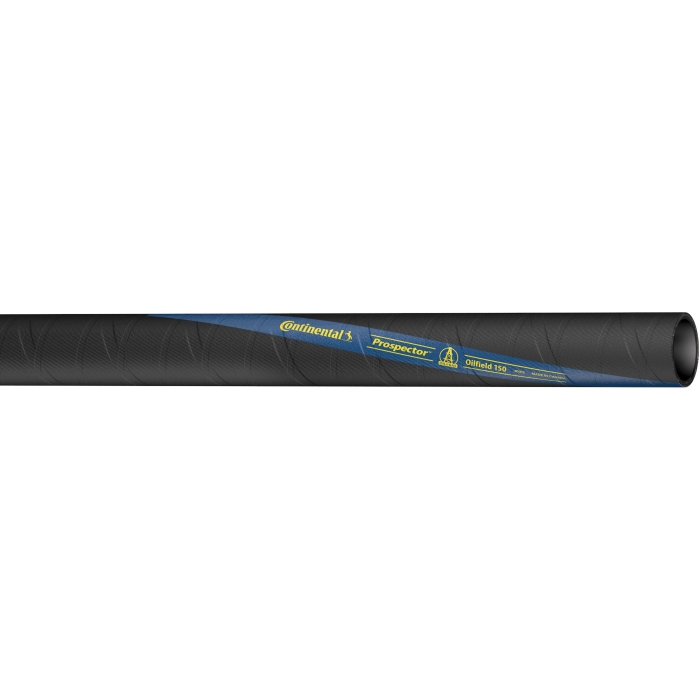 Continental Prospector™ Oilfield Chemical and Petroleum Transfer Hose, Nominal Size: 3 in, 3.54 in OD, 3 in ID, 100 ft Length, 150 psi, Synthetic Rubber, SBR Cover, Construction: Spiral-Plied Synthetic Fabric with Wire Helix, Black, 8 in Bend Radius, Resistance Properties: Oil, -25 deg F Low, 180 deg F High