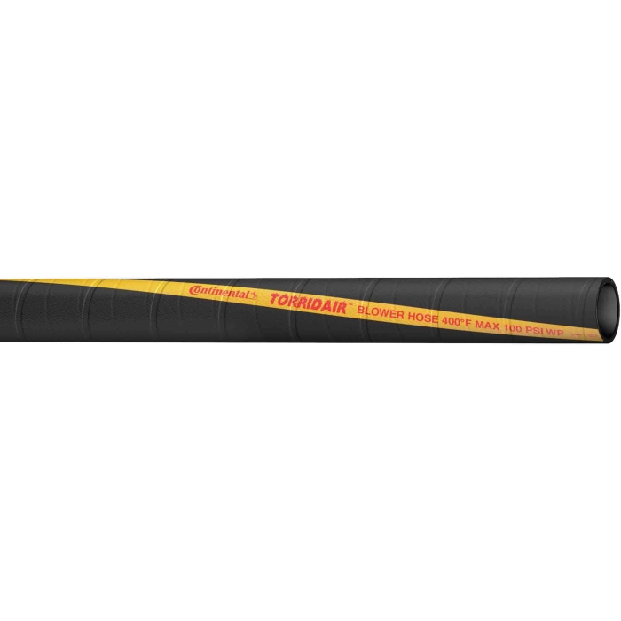 Continental Plicord® Torridair™ Hot Air Blower Hose, Nominal Size: 3 in, 3.53 in OD, 3 in ID, 100 ft Length, 100 psi, EPDM, EPDM Cover, Construction: Spiral-Plied Synthetic Fabric with Double Wire Helix, Black, 7 in Bend Radius, Resistance Properties: Weather, -40 deg F Low, 400 deg F High
