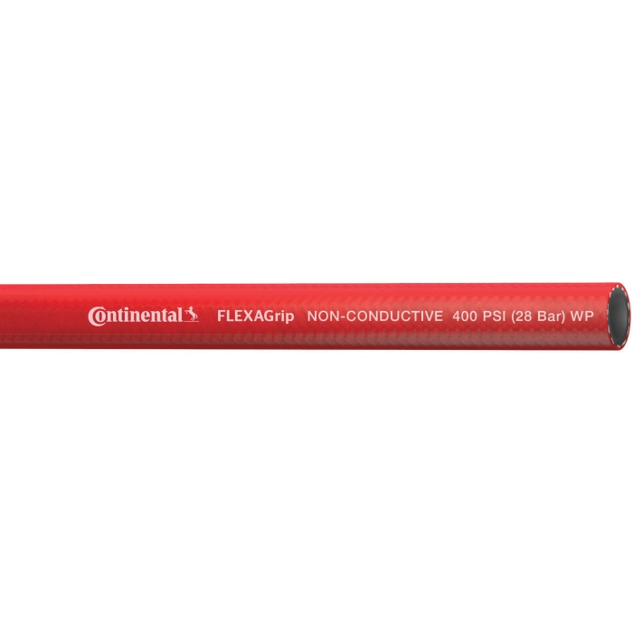 Continental FLEXAGrip™ Push-On Multi-Purpose Hose, Nominal Size: 1/2 in, 0.76 in OD, 0.50 in ID, 500 ft Length, 400 psi, Chemivic™ Synthetic Rubber, Carbryn™ Synthetic Rubber Cover, Construction: 1-Braided High-Strength Synthetic Yarn, Red, 5 in Bend Radius, Resistance Properties: Abrasion, Heat, Oil, Weather, -40 deg F Low, 210 deg F High