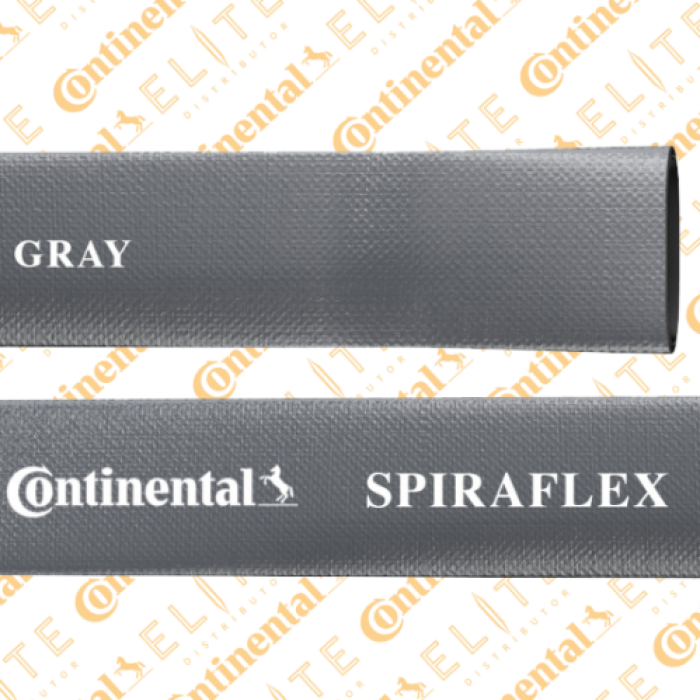 Continental Spiraflex® Light-Duty Water Discharge Hose, Nominal Size: 2-1/2 in, 2.79 in OD, 2.50 in ID, 300 ft Length, 60 psi, Pliovic® Compound/Synthetic Fabric, Pliovic® Compound Cover, Construction: Synthetic Fabric, Gray, -10 deg F Low, 150 deg F High