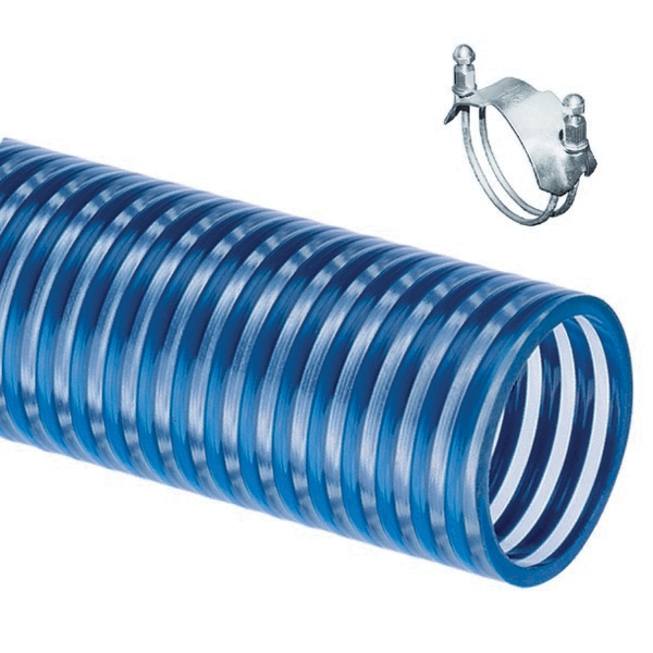Kuriyama Tigerflex® Low Temperature Suction Hose, Blue Water BW™ Series, Nominal Size: 3/4 in, 1.01 in OD, 0.75 in ID, 100 ft Length, 115 psi, PVC, Construction: Rigid PVC Helix, Transparent, 3 in Bend Radius, -40 deg F Low, 150 deg F High