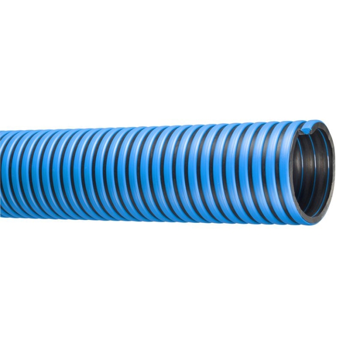 Kuriyama Tigerflex™ Suction Hose, Tiger™ TBLU™ Series, 3.6 in OD, 3 in ID, 45 psi, EPDM, EPDM Cover, Construction: Polyethylene Helix, Blue, 7 in Bend Radius, Resistance Properties: Chemical, -40 deg F Low, 160 deg F High