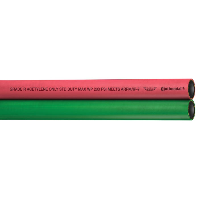 Continental Twin-Line Type VD Grade RM Welding Hose, Nominal Size: 1/4 in, 0.53 in OD, 0.25 in ID, 500 ft Length, 200 psi, Synthetic Rubber, Chemivic™ Synthetic Rubber Cover, Construction: Spiral Synthetic Yarn, Green/Red, -40 deg F Low, 120 deg F High, For Use With: Oxygen and Acetylene Gases