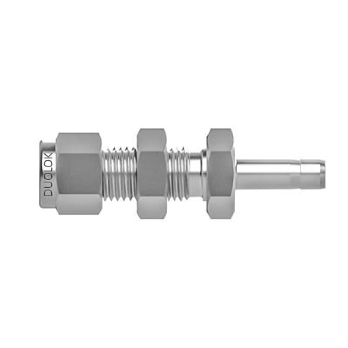 SSP® Duolok® Bulkhead Straight Adapter, BR Series, Connection Type 1: Tube Fitting, Connection Size 1: 1/4 in, Connection Type 2: Tube Stub, Connection Size 2: 1/4 in, Hex Size: 5/8 in, 316 Stainless Steel, Dimensions: 2.2 in L