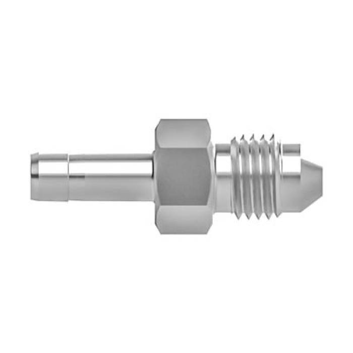 SSP® Duolok® Straight Adapter, ANA Series, Connection Type 1: Tube Stub, Connection Size 1: 3/8 in, Connection Type 2: Fitting, Gender 2: Male, Connection Size 2: 1/4 in, Thread Size 2: 7/16-20 UNJF-3, Hex Size: 1/2 in, 316 Stainless Steel, Dimensions: 1.53 in L