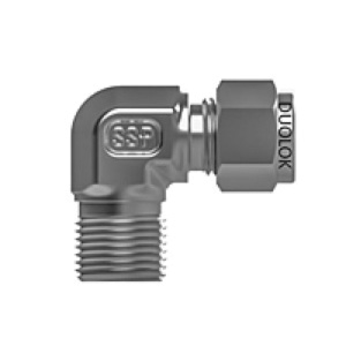 SSP® Duolok® Elbow, Connection Type 1: Tube Fitting, Connection Size 1: 1/8 in, Connection Type 2: NPT, Gender 2: Male, Connection Size 2: 1/8 in, Hex Size: 1/2 in, Brass