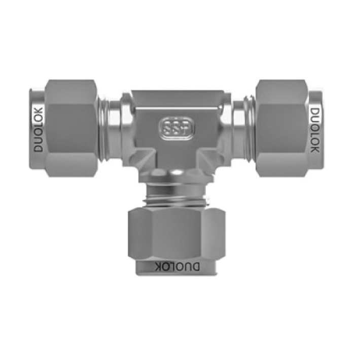 SSP® Duolok® Union Tee, Series: UT, Connection Type 1: Tube Fitting, Connection Size 1: 8 mm, Connection Type 2: Tube Fitting, Connection Size 2: 8 mm, Connection Type 3: Tube Fitting, Connection Size 3: 8 mm, Hex Size: 16 mm, 7750 psig, 316 Stainless Steel, Dimensions: 59.7 mm L