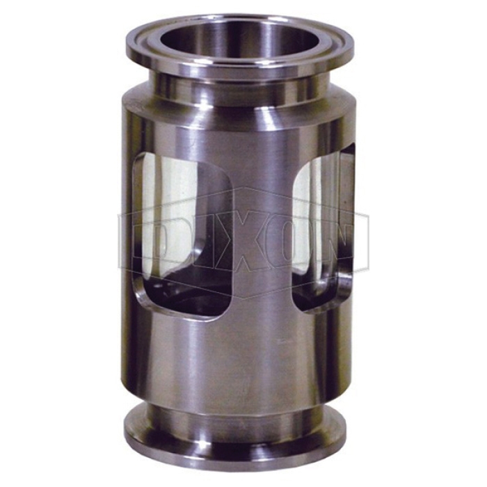 Dixon® Compact Sight Glass, Connection Size: 1-1/2 in, Connection Type: Clamp, 3.64 in Length, 100 psi, 200 deg F, 316L Stainless Steel Window, Buna-N Seal, Borosilicate Glass Indicator