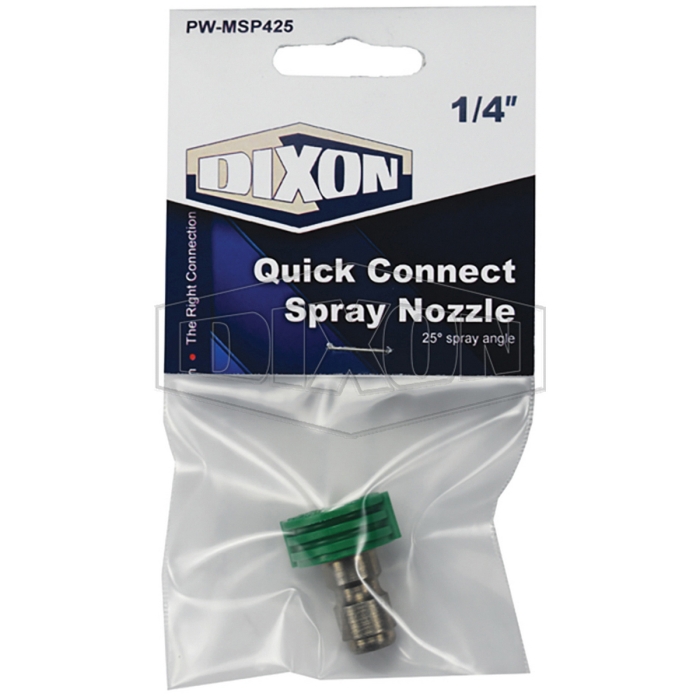 Dixon® Quick-Connect Spray Nozzle, Spray Pattern: 25 deg Angle Spray, Nozzle Size: #4, Green, For Use With: 1/4 in Straight Through Quick-Connect Coupler, Packaging Quantity: 4 PK