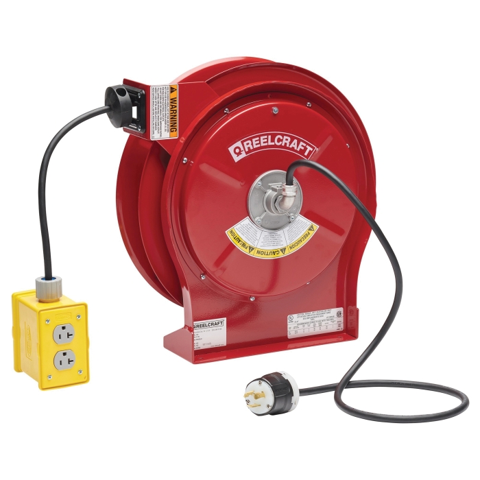 Reelcraft® Series L 4000 and L 5000 power and light cord reels offer many different styles of outlets and lamps. Easy-to-mount and structurally strong, the power cord and light cord reels have robotically welded heavy-gauge steel frame that attaches to most structurally sound surfaces. For indoor, non-weather tight applications only.