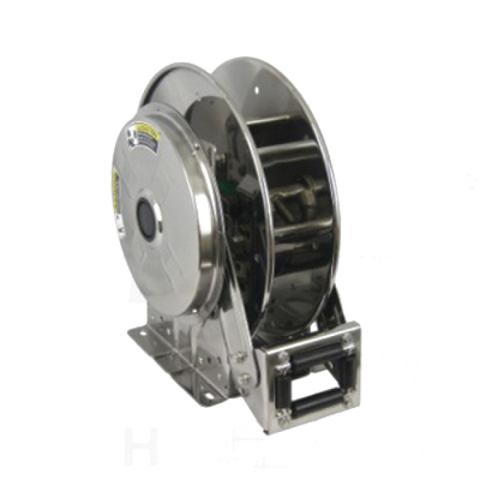 Hannay Reels® Hose Reel, SSN Series, 75 ft Length Hose, Inlet Size: 1/2 in FPT Swivel, Outlet Size: 1/2 in FPT Swivel, Winding Method: Spring Rewind, Stainless Steel, Finish: Mill, 20 - 400 deg F, 3000 psi, Dimensions: 25-1/4 in L x 13 in W x 26 in H