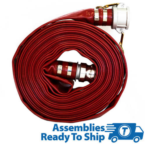 TIPCO Ready Ship, Antietam, Red Medium Weight Layflat Discharge Hose Assembly, CXE, 2 IN X 50 FT