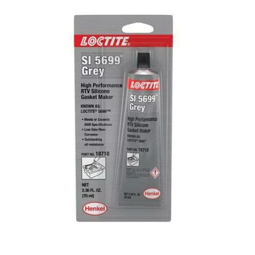 Loctite® Silicone Gasket Maker Sealant, SI 5699 Series, Container Size: 190 mL, Container Type: Aerosol Can, Paste, Gray, Mild, Oxime Silicone Base, Composition: Reinforcing filler, Oximino Silane, Norflurane, Silica, Amorphous Treated, Butanone Oxime, Aluminum, Reactive Silane, Setting Time: 30 min, Curing Time: 24 hr, Specific Gravity: 1.5, Flash Point: 93 deg C, VOC Content: 53.7 g/L, -75 to 625 deg F, Applicable Materials: Metal