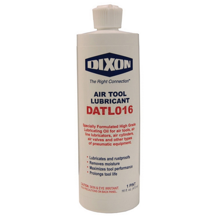 Dixon® Air Tool Lubricant, Container Size: 1 pt, Limpid, Yellow, Characteristic, Composition: Distillates (Petroleum), Hydrotreated Heavy Paraffinic, Flash Point: >=388 deg F, Viscosity: 18.9 - 24.2 sq-mm/s, Pour Point: -20 deg C, Flammability Rating: 1, Packaging Quantity: 1 PK