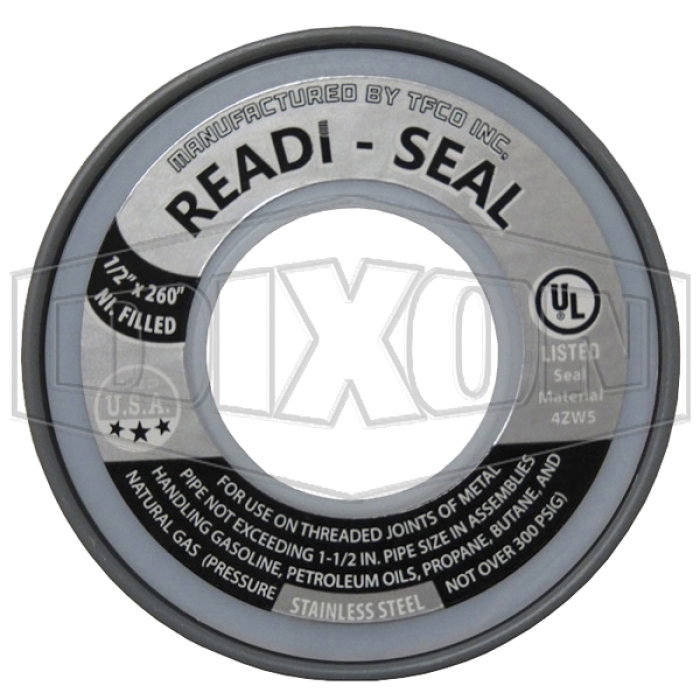 Dixon® Stainless Steel PTFE Tape, 260 in Length, 4 mil Thickness, -450 to 550 deg F, Nickel/PTFE, Gray, Packaging Quantity: 1 PK