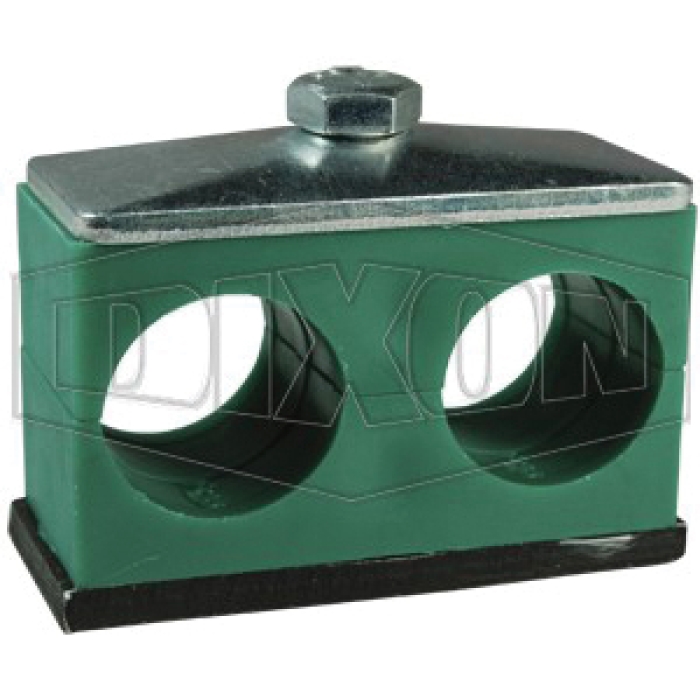 Dixon® Clamp, Twin Series, Nominal Size: 1/2 in, Polypropylene/Steel, 2.17 in Length, 1.18 in Width, Includes: Bolts, Cover Plate, and Weld Plate, For Use With: 1/2 in Tube