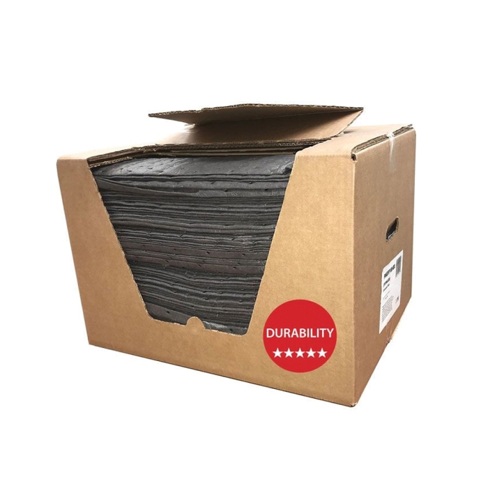 Our Universal fine fiber meltblown (FMF) pads are used to contain and absorb splashes and spills under and around machinery. The fine fiber polypropylene increases the strength and durability of the pads and rolls so they can be perforated like a paper towel. Perforations will help reduce waste and allow you to use the exact amount needed for the job. Using fine fiber increases the strength, which enables pads and rolls to grip surfaces securely.