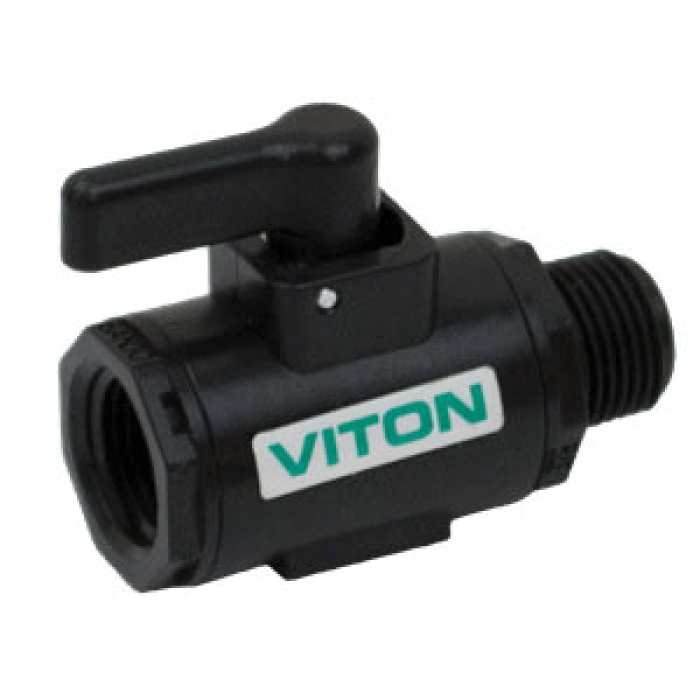 Banjo® Micro Valve, Nominal Size: 3/8 in, Connection Type: FPT x MPT, Precision Molded Polypropylene, FKM Seal, 2-7/32 in Length, 300 psi