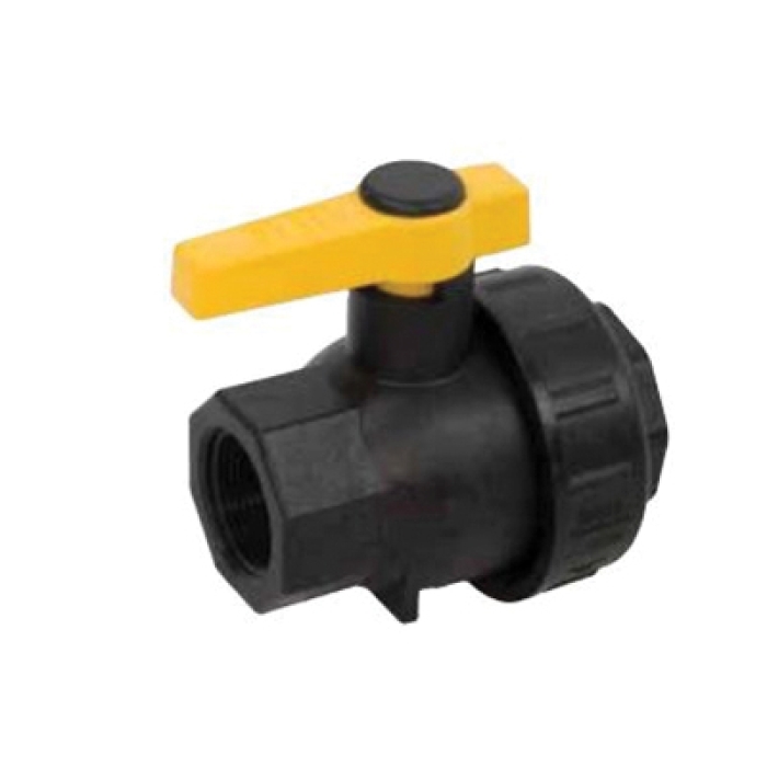 Banjo® Full-Port Single Union Spinweld Ball Valve, Nominal Size: 3/4 in, Connection Type: Threaded, Polypropylene, PTFE Seat Trim, EPDM Seal, 3-3/8 in Length, 70 deg F, 300 psi