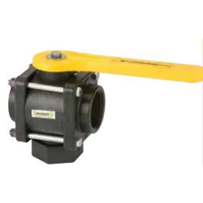 Banjo® 3-Way Bottom Load Ball Valve, Nominal Size: 2 in, Connection Type: FPT, Actuator Type: Lever, Polypropylene, PTFE Seat Trim, FKM Seal, 6-29/32 in Height, 200 psi