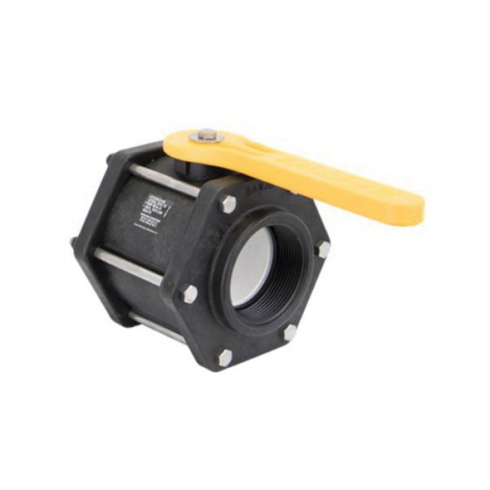 Banjo® 6-Bolt Full-Port Ball Valve, Nominal Size: 3 in, Connection Type: FPT, Actuator Type: Lever, Polypropylene, PTFE Stem Bushing and Seat Trim, FKM Seal, 7-11/32 in Length, 7-11/32 in Width, 150 deg F, 200 psi