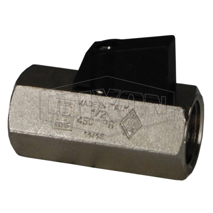 Dixon® Standard-Port Mini Ball Valve, Nominal Size: 1/8 in, Connection Type: FPT, Brass, PTFE Trim, FKM Seal, Finish: Nickel-Plated, 330 deg F, 450 psi