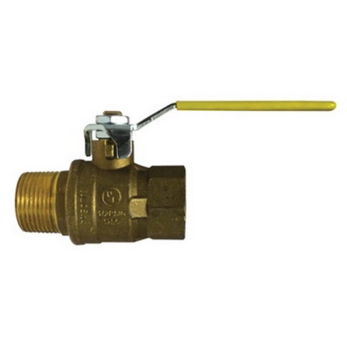 Midland Metals Ball Valve, Nominal Size: 3/4 in, Connection Type: MIP x FIP, Forged Brass, Virgin TFE Seal, 2-3/4 in Length, -20 to 248 deg F, 600 psi