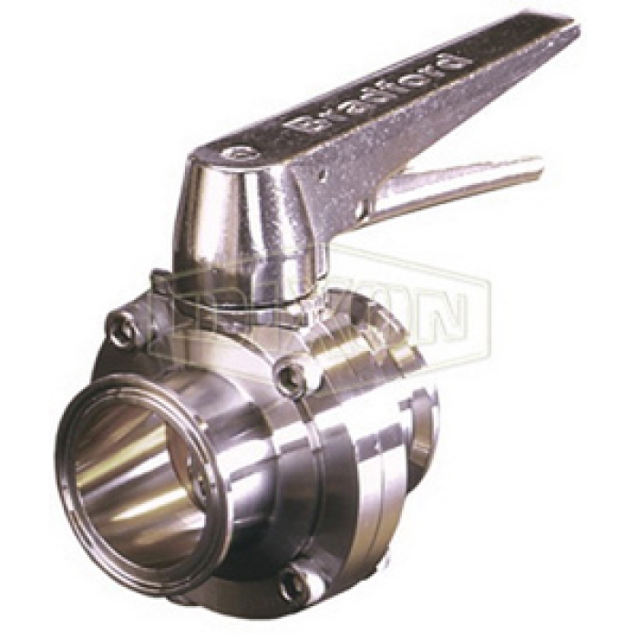 Dixon® Butterfly Valve, B5101 Series, Nominal Size: 2-1/2 in, Connection Type: Clamp, Actuator Type: Trigger Handle, 316L Stainless Steel, FKM Trim, Flow Coefficient: 264 Cv, 4.6 in Length, 3.8 in Width, 32 - 200 deg F, 110 psi, Packaging Quantity: 1 BX