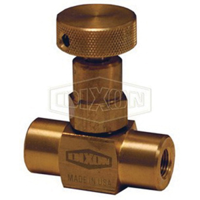 Dixon® Mini Needle Valve, Nominal Size: 1/4 in, Connection Type: FPT, Actuator Type: Knurled Knob Handle, Brass, 316 Stainless Steel Trim, FKM Seal, Flow Coefficient: 0.42 Cv, 6000 psi