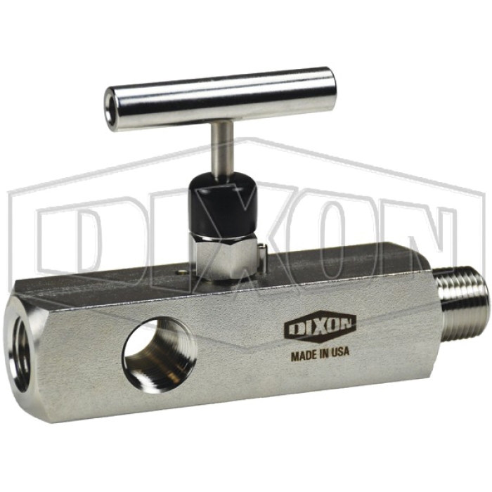 Dixon® Multi-Port Needle Valve, Nominal Size: 1/2 in, Connection Type: MPT x FPT, Actuator Type: T-Handle, 316 Stainless Steel, 316 Stainless Steel Trim, FKM Seal, Flow Coefficient: 0.44 Cv, 10000 psi